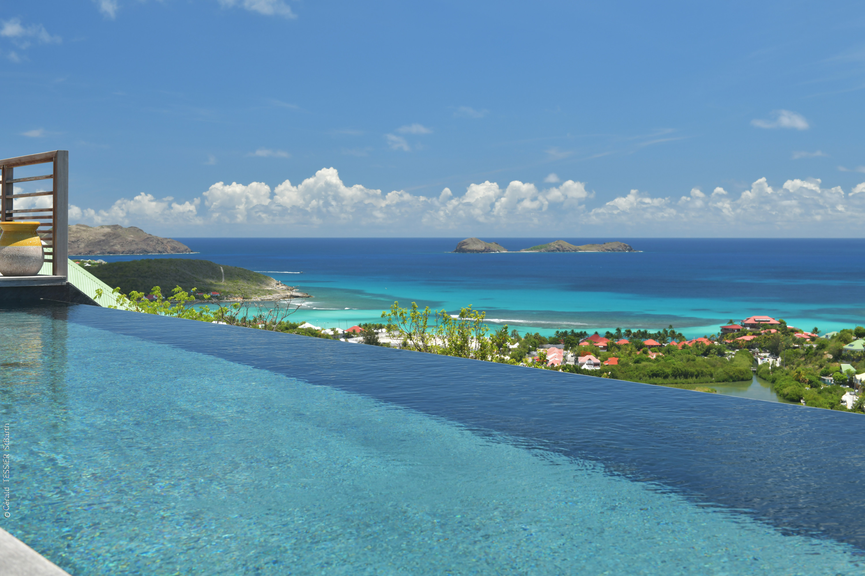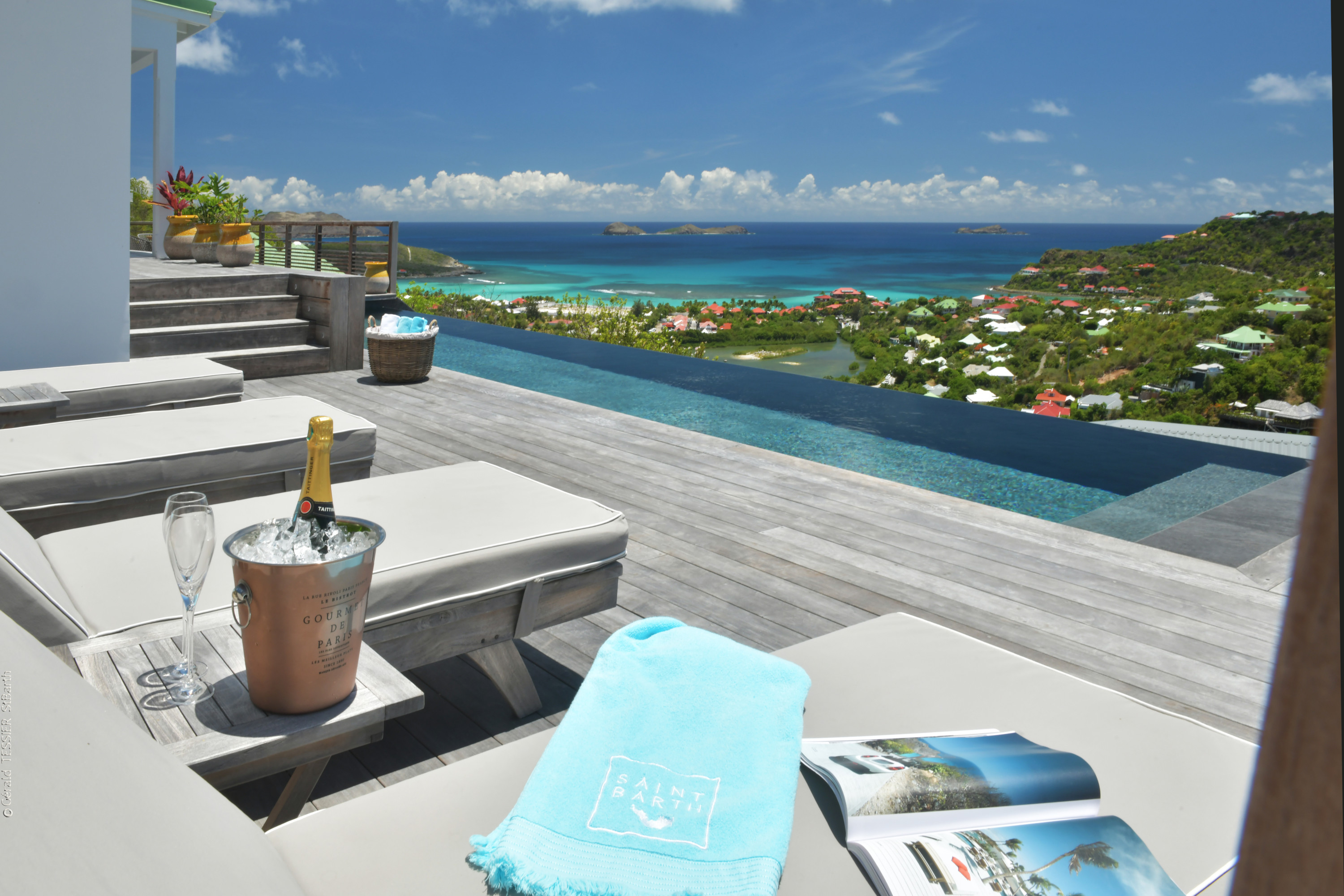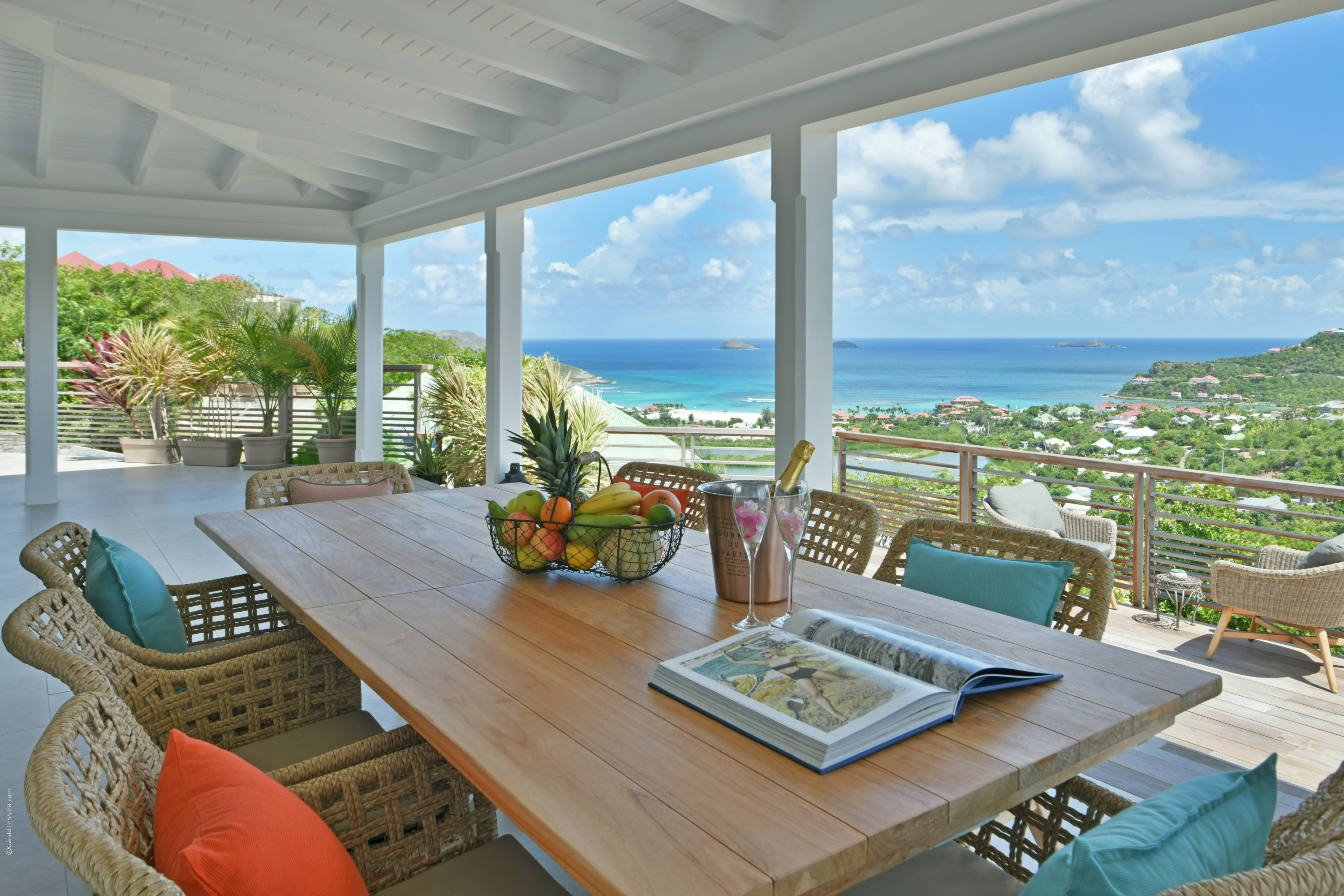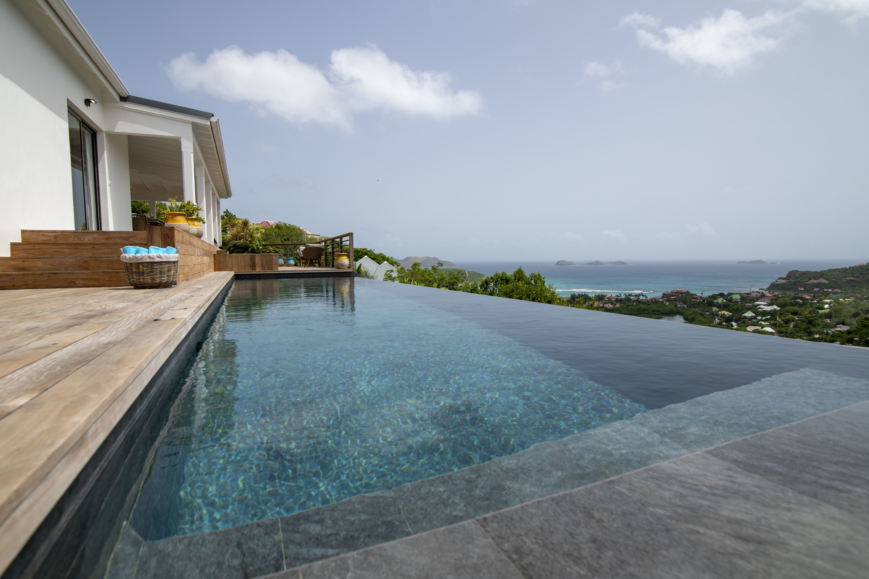 Villa Vogue, (villa code: WV VGE) is a 5-bedroom villa set on the mountainside with views of the rolling hillside along with the turquoise waters of St. Jean Baie. The air-conditioned main room, with the living room and the very well-equipped open kitchen, opens onto the outdoor terrace with a covered dining and sitting area and the beautiful heated pool. On the same level, there are 3 bedrooms, one of them has direct access from the living room, and the other 2 are located in independent bungalows. The air-conditioned gym is also on the same level. On a lower level, the Guest House offers two additional bedrooms offering the same equipment as well as a lounge area and a second fully-equipped kitchen. During the December holidays, the villa rents at the full occupancy rate regardless of how many bedrooms are used. * Note - A four-wheel drive is highly recommended.Please fill out the form to begin your inquiry and we will connect you with a seasoned villa rental specialist.