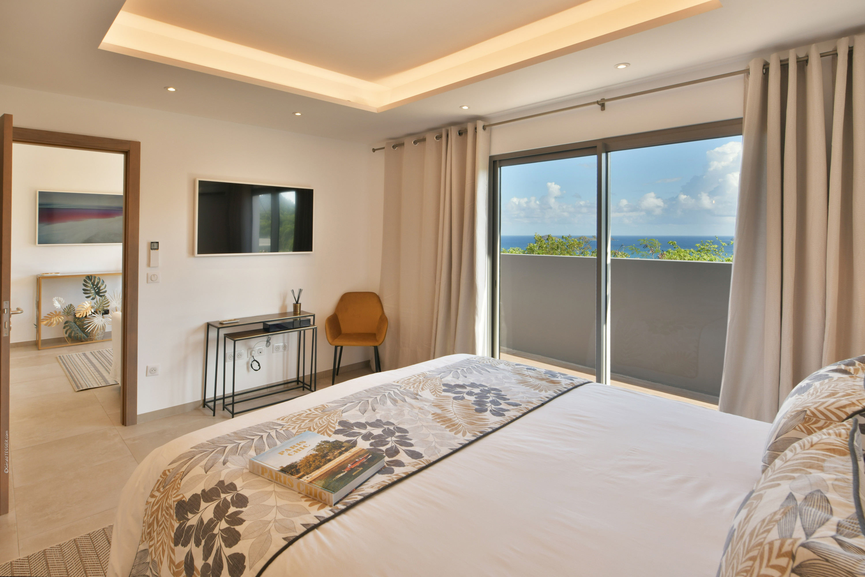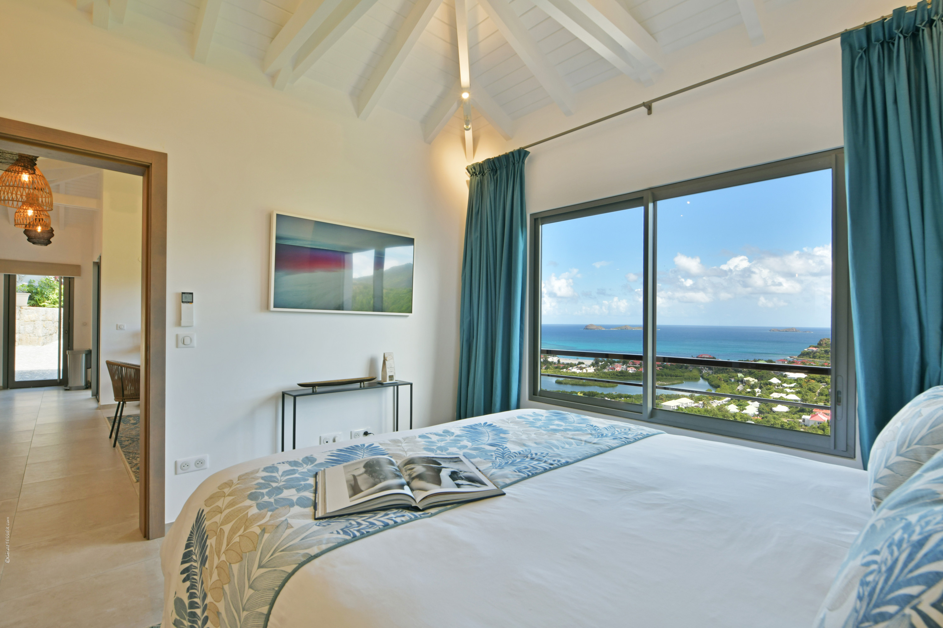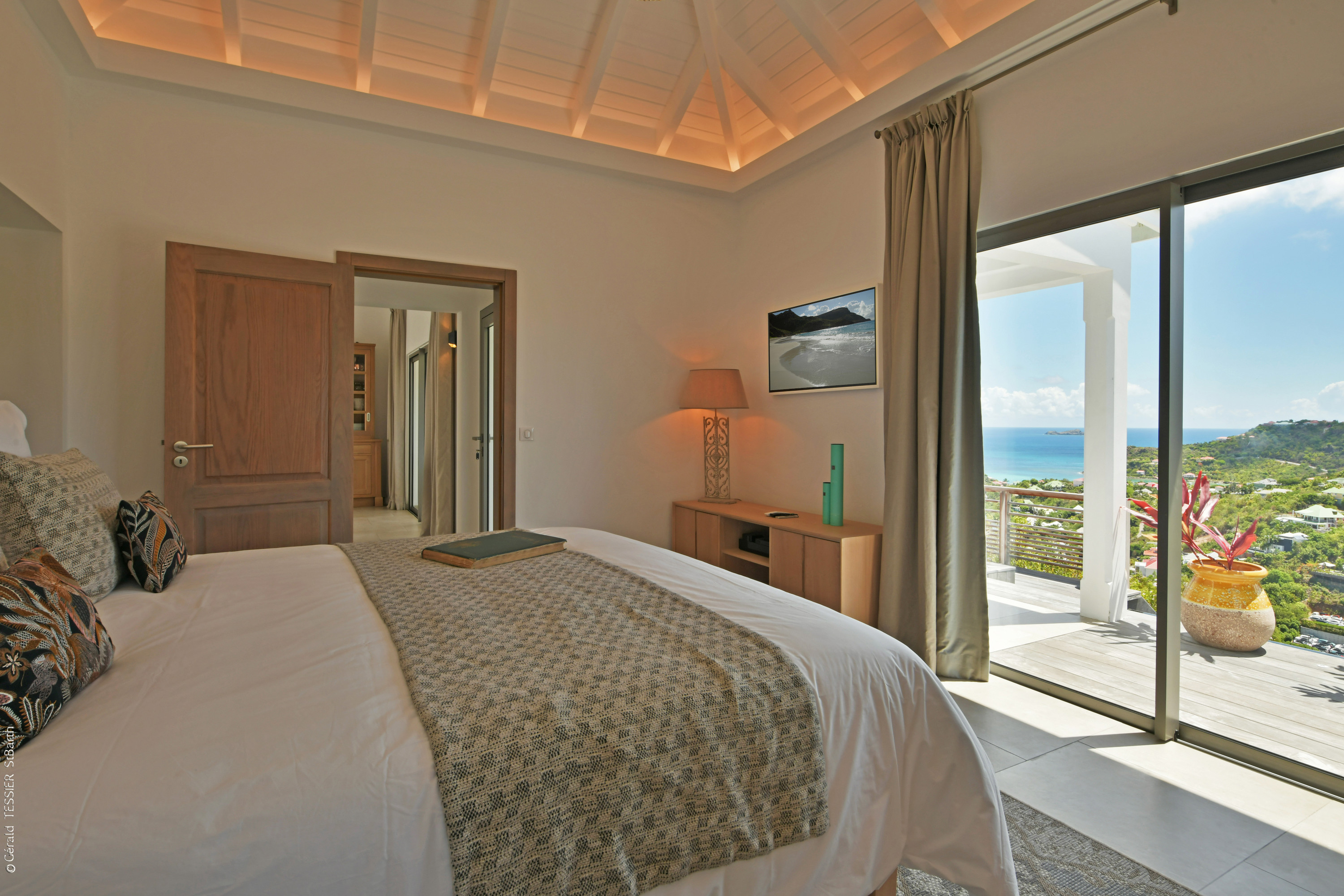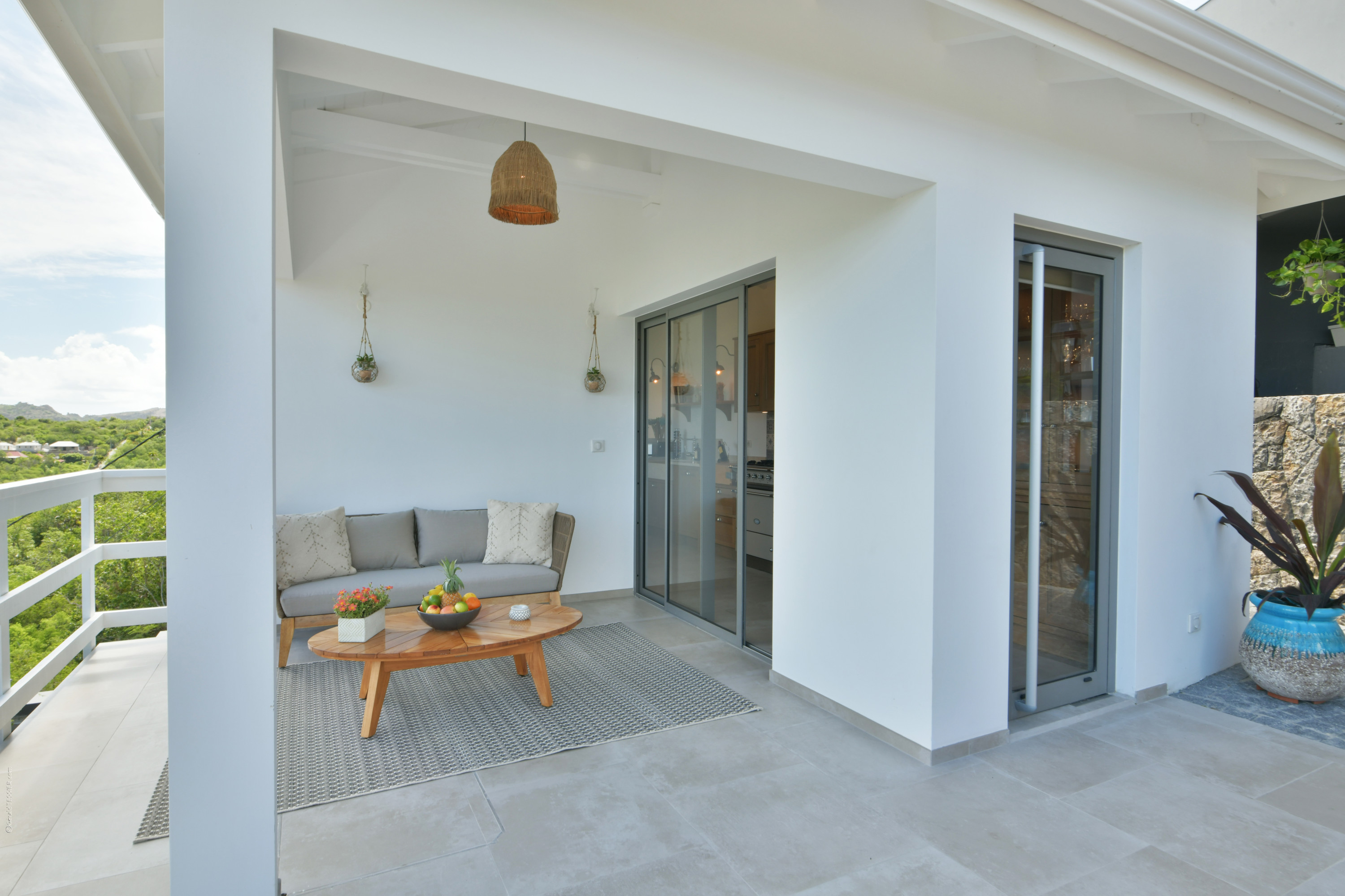 Villa Vogue, (villa code: WV VGE) is a 5-bedroom villa set on the mountainside with views of the rolling hillside along with the turquoise waters of St. Jean Baie. The air-conditioned main room, with the living room and the very well-equipped open kitchen, opens onto the outdoor terrace with a covered dining and sitting area and the beautiful heated pool. On the same level, there are 3 bedrooms, one of them has direct access from the living room, and the other 2 are located in independent bungalows. The air-conditioned gym is also on the same level. On a lower level, the Guest House offers two additional bedrooms offering the same equipment as well as a lounge area and a second fully-equipped kitchen. During the December holidays, the villa rents at the full occupancy rate regardless of how many bedrooms are used. * Note - A four-wheel drive is highly recommended.Please fill out the form to begin your inquiry and we will connect you with a seasoned villa rental specialist.