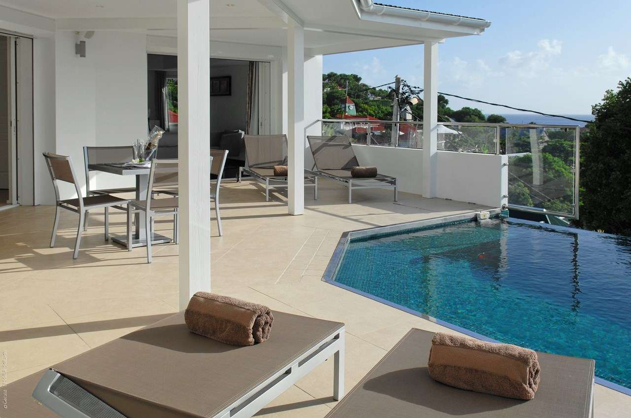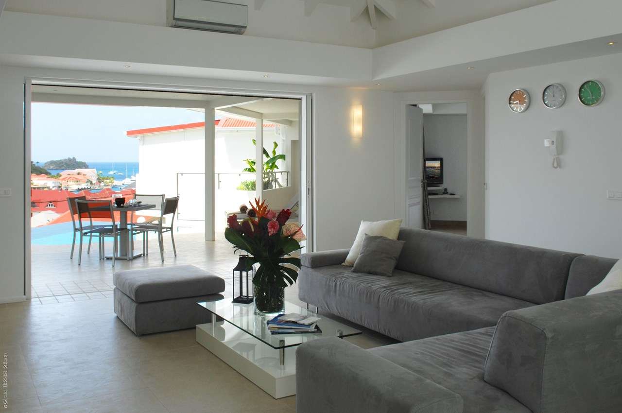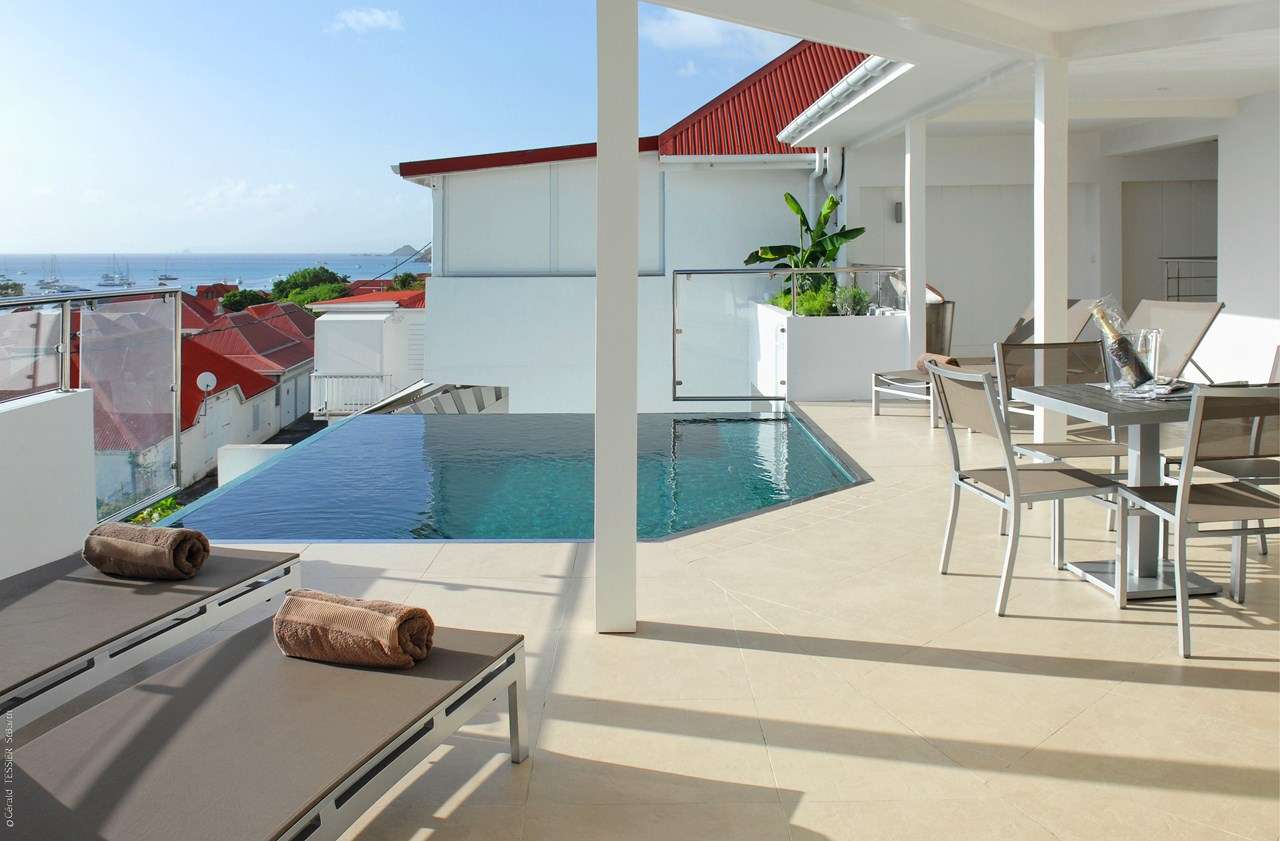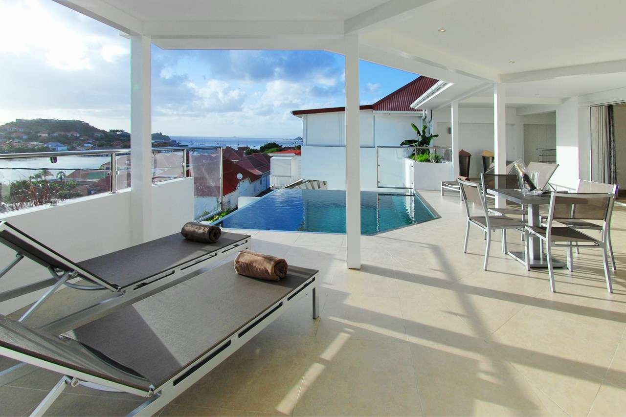 Welcome to Villa Wastra (villa code: WV ROS), a newly-built 2-bedroom apartment in Gustavia, St. Barts. Located on the hillside above town, this apartment offers stunning views over the harbor. Quiet, private, and modern, Villa Wastra is a comfortable home away from home, with a terrace overlooking the harbor, and a plunge pool for cooling off. The interiors are modern and glamorous, with pops of color in artworks and décor. From the entire home, guests will enjoy the views over the red roofs of Gustavia towards the shimmering Caribbean sea. Located on the northern side of town, you can walk to all of the restaurants and shops in Gustavia, and Shell Beach is about a 5-minute walk. Also easily accessible are the beaches of Gouveneur and St. Jean, a quick drive away. The open-plan great room at Villa Wastra contains the living room, dining area, and kitchen. The entire space opens to the outdoor terrace, letting in plenty of natural light and sea breezes. In the living room, a comfortable sofa is ideal for unwinding after a day spent lounging by the pool. It’s a great spot for both conversations with your group or a cozy movie night, watching on the large TV. The well-equipped kitchen at Villa Wastra can handle any culinary challenge thrown at it. Our concierge can even organize grocery pre-stocking or delivery, catered meals, or arrange private chef service for a special occasion. The dining room has a wooden table with seating for 6 guests, a magnificent spot for elegant dinners. For something different, sliding glass doors lead to a rear patio with a gas grill, offering a chance to fry up some freshly caught fish for dinner. If you’d prefer to eat in the open air, it’s as easy as whisking your plate outside. On the covered terrace is a second dining table, a magnificent setting for a meal in the warm Caribbean evenings with the twinkling lights of the harbor below. The 2 bedrooms at Villa Wastra are on either side of the living room, ensuring quiet and privacy for both. Each room is calming and tranquil, with a contemporary white and gray color scheme contrasted with the warm floor tiles. Each room has a luxurious king-sized bed, promising a wonderful night’s sleep. Ensuite bathrooms in each are spacious while sliding doors open onto the outdoor terrace. Speaking of the terrace, it’s a wonderful area to enjoy the glorious island weather. Loungers on either side of the dining table offer a comfortable spot to sunbathe, read a book, or get some work done by the pool. When things get too warm, it’s as easy as slipping into the refreshing water. Villa Wastra’s infinity-edge seemingly spills into the Gustavia Harbor, where sailing yachts come and go from the dock. Shell Beach is a few minutes away on foot, offering a picture-perfect sweep of white sand and turquoise waters. As the name implies, shells dot the sand, encouraging you to wander up and down the beach scavenging for the prettiest one.Please fill out the form to begin your inquiry and we will connect you with a seasoned villa rental specialist.