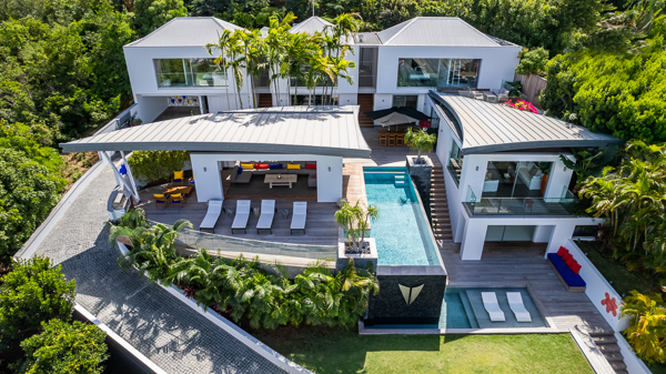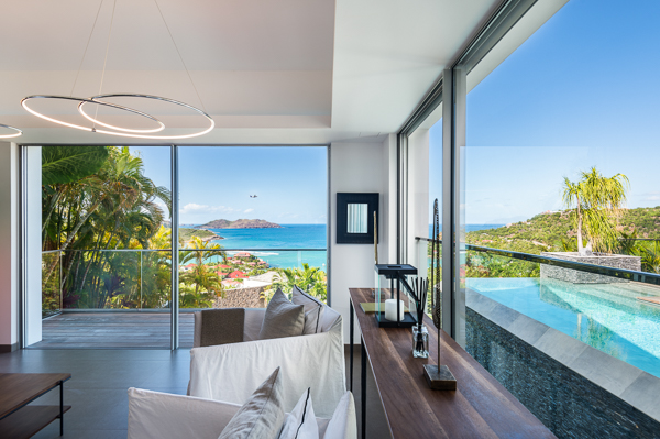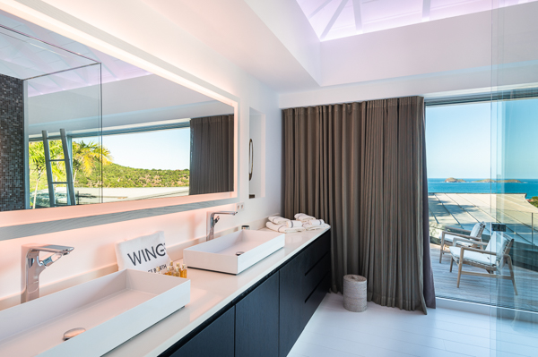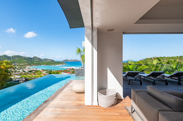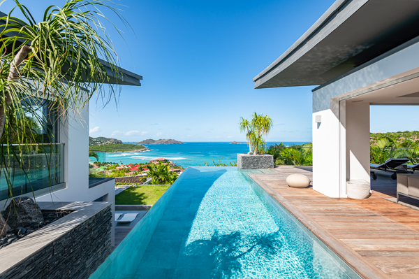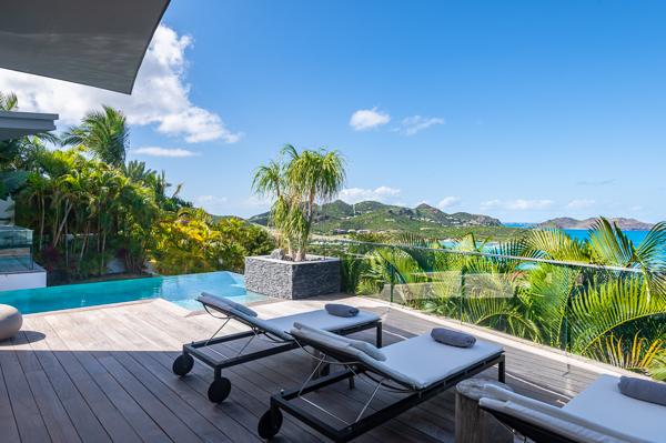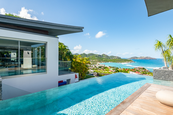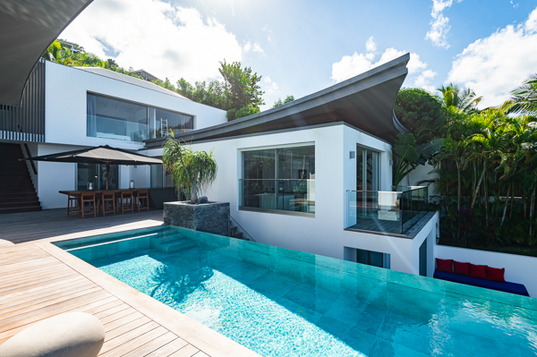 Villa Wings, (villa code: WV WIN) is a 4-bedroom villa perched high in the hills above Baie de St. Jean, giving the impression of being ready to take flight over the picturesque island of St. Barts. It skillfully combines secluded privacy with close proximity to St. Jean Beach and the charming village's boutiques and restaurants. Spanning three levels, the expansive outdoor living space offers a panoramic bird's-eye view. The upper level hosts three French king bedrooms with luxurious ensuite baths, providing guests with amenities, from U.S. Satellite TV to plush robes. The fourth ensuite bedroom, situated on the lower level next to the villa's second pool (heated in winter), features a king bed convertible to twins, making it ideal for teens. A sleek and spacious kitchen, designed for gourmet cooking, is adjacent to the interior dining room and just steps away from a covered dining terrace. The main level encompasses an air-conditioned TV room and a guest bath. The infinity-edge pool, also heated in winter, takes center stage on a sprawling deck, perfect for gatherings with family and friends or hosting grand events. Additionally, the villa includes an air-conditioned fitness room. With its beautifully landscaped surroundings, Villa Wings exudes a subtle Zen-like ambiance.Please fill out the form to begin your inquiry and we will connect you with a seasoned villa rental specialist.