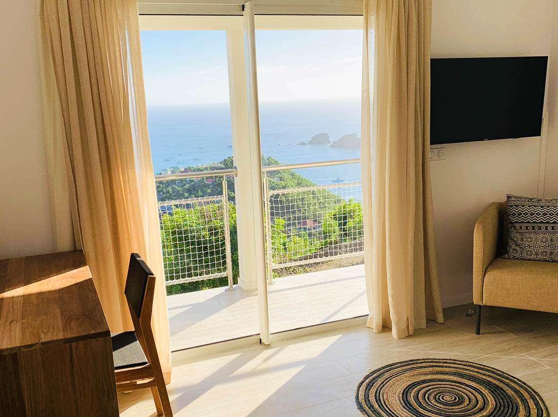With a fabulous location near the bakery of Colombier, every morning for breakfast you’ll have fresh croissants and baguettes available. The views are always lively, with planes flying in the distance and boats sailing in and out of the port during the day. At night, you can enjoy the twinkling lights of Gustavia in the distance.